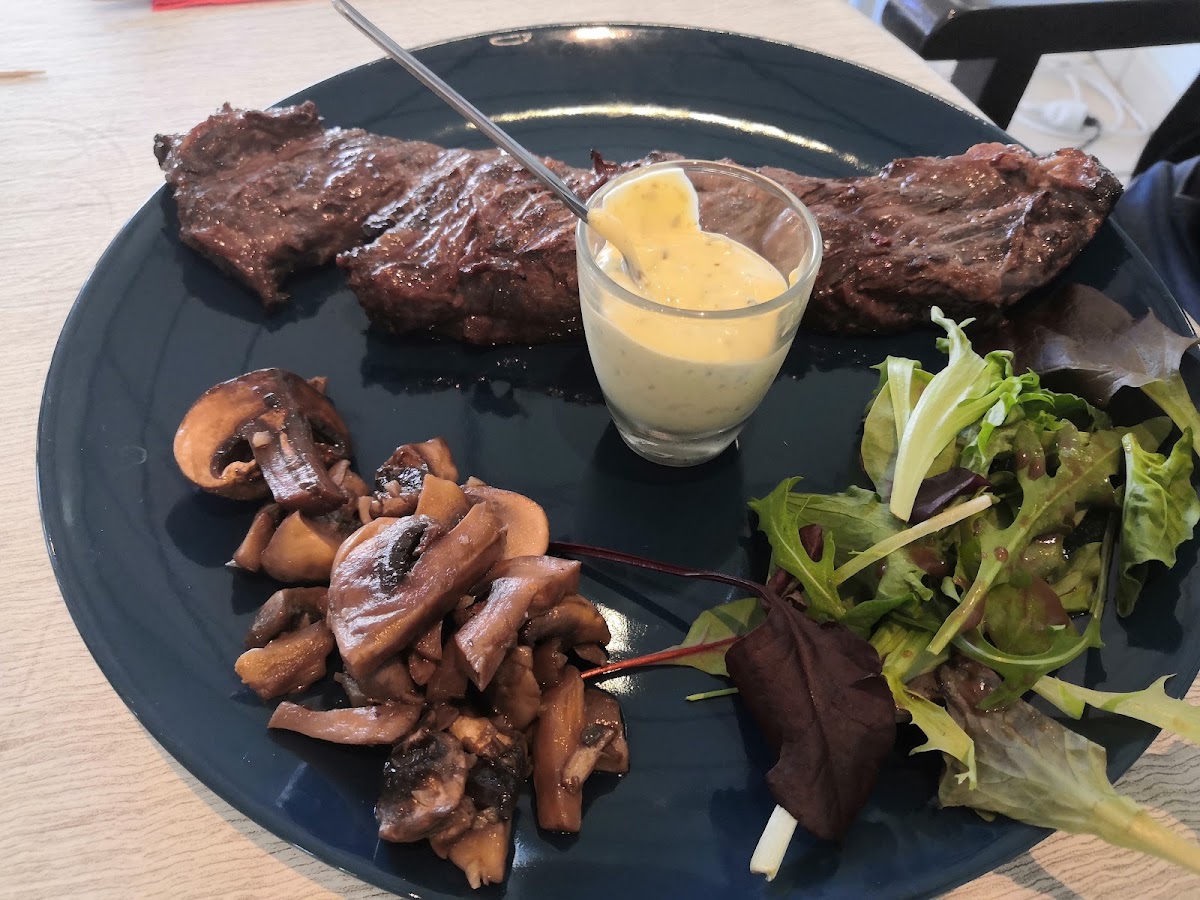 Bon restaurant. Cuisine de bonne qualité. Cuisson de viande parfaite, seul bémol j'ai eu des frite à partager. Clientèle habitué du lieu. Service rapide. Je recommande !
